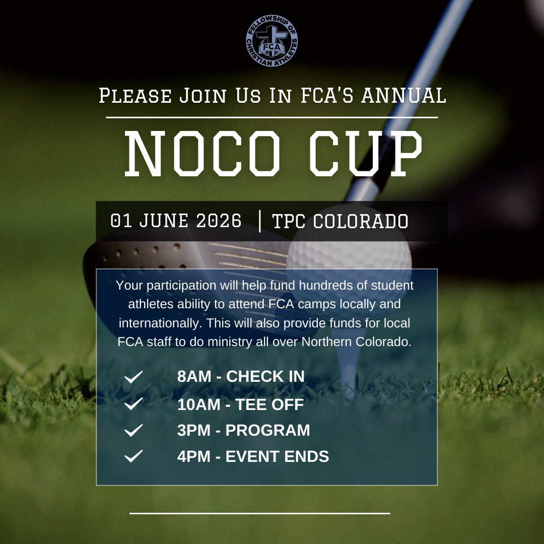 Last year, we enjoyed a beautiful day of golfing together for a purpose. We partnered together with 26 local businesses and 24 local corporate sponsors to send Coaches to our Marriage Retreat, student athletes to our summer sports camp, and supported FCA Northern Colorado staff of 16 to discipleship Coaches and Athletes into a growing relationship to Jesus.
